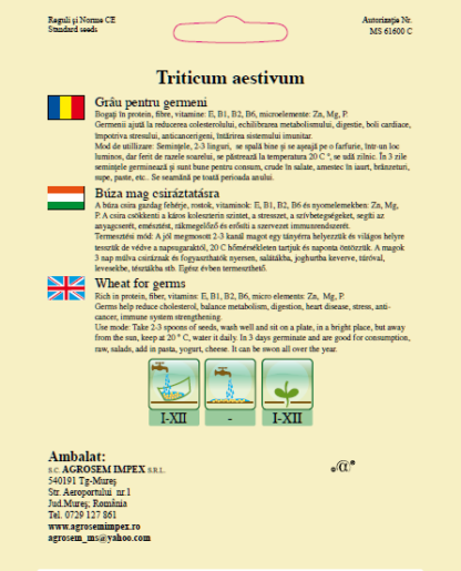 Mod de utillizare: Semințele, 2-3 linguri,  se spală bine și se așeajă pe o farfurie, într-un loc luminos, dar ferit de razele soarelui, se păstrează la temperatura 20 C º, se udă zilnic. În 3 zile semințele germinează și sunt bune pentru consum, crude în salate, amestec în iaurt, brânzeturi, supe, paste, etc.. Se seamănă pe toată perioada anului.